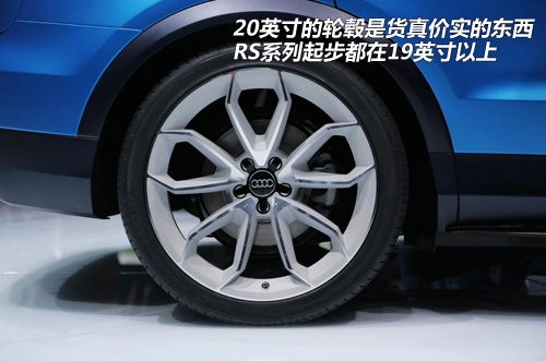 輪轂樣式是典型的奧迪范兒,談不上丑,但也并非很運(yùn)動(dòng)的那種,復(fù)雜的圖案給人以錯(cuò)覺(jué)感,20英寸看起來(lái)并不顯大。