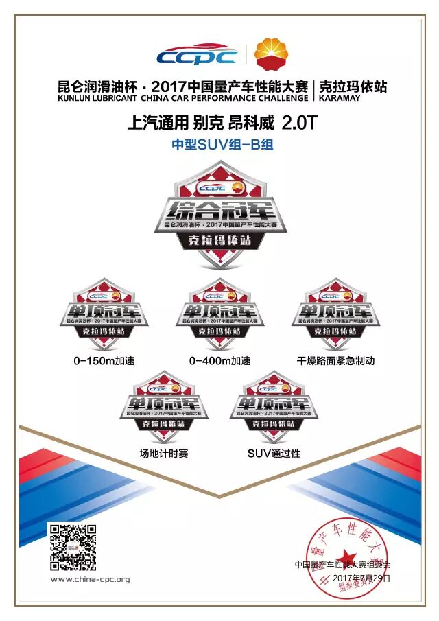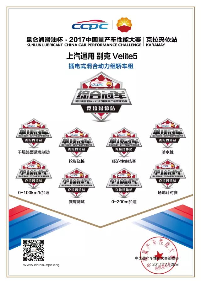 近日,2017中國量產(chǎn)車性能大賽(CCPC)在克拉瑪依打響,別克品牌以兩項小組冠軍首戰(zhàn)告捷。其中,首次出征的別克VELITE 5增程型混合動力車一鳴驚人,以壓倒性優(yōu)勢問鼎插電式混合動力轎車組冠軍;全能中型SUV別克昂科威發(fā)揮穩(wěn)定,將中型SUV B組冠軍輕松收入囊中。